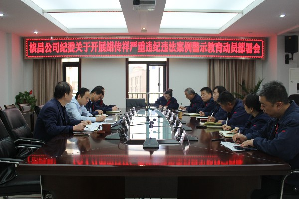 4月30日上午,核昌公司紀(jì)委在公司小會(huì)議室組織公司班子成員、各黨支部書記召開關(guān)于胡傳祥嚴(yán)重違紀(jì)違法案例警示教育動(dòng)員部署會(huì)。會(huì)議由公司紀(jì)委書記梁英平主持。首先,梁書記對(duì)集團(tuán)公...