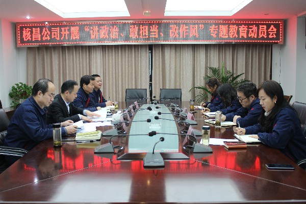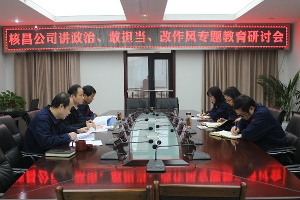12月17日下午,核昌公司黨委根據(jù)集團(tuán)公司黨委的安排部署,在公司小會議室召開了“講政治、敢擔(dān)當(dāng)、改作風(fēng)”專題教育動員會,核昌公司全體班子成員參加會議,會議由黨委書記王超宏主持...