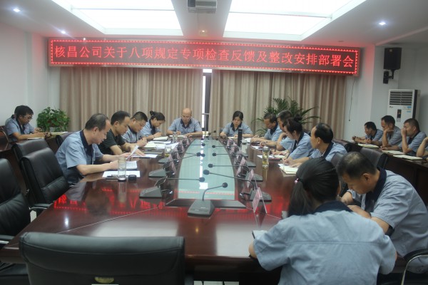 為深入貫徹中央全面從嚴(yán)治黨要求,落實(shí)中央八項(xiàng)規(guī)定精神,根據(jù)集團(tuán)公司落實(shí)八項(xiàng)規(guī)定精神專項(xiàng)檢查情況通報(bào)會(huì)會(huì)議精神,結(jié)合公司實(shí)際,2018年8月9日,核昌公司于小會(huì)議室召開關(guān)于八項(xiàng)規(guī)...
