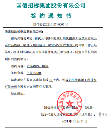 2024年1月31日,國信招標(biāo)集團股份有限公司發(fā)來簽約通知書,陜西核昌機電裝備有限公司成功中標(biāo)產(chǎn)品噴砂噴漆項目。自項目發(fā)布招標(biāo)公告以來,核昌公司領(lǐng)導(dǎo)高度重視項目招投標(biāo)工作,認(rèn)真...