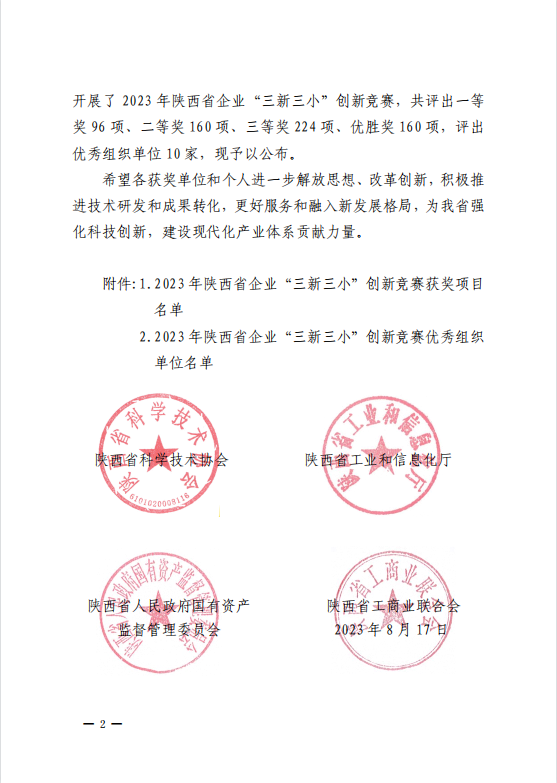 “三新三小”主要指企業(yè)經(jīng)營活動(dòng)中的“新技術(shù)、新工藝、新材料”和“小發(fā)明、小創(chuàng)新、小改造”?!叭氯 眲?chuàng)新競賽由陜西省科學(xué)技術(shù)協(xié)會(huì)、陜西省工業(yè)和信息化廳、陜西省人民政府國有資產(chǎn)監(jiān)督管理委員會(huì)、陜西省工商業(yè)聯(lián)合會(huì)共同主辦,是圍繞產(chǎn)業(yè)鏈部署創(chuàng)新鏈、圍繞創(chuàng)新鏈布局產(chǎn)業(yè)鏈,引導(dǎo)企業(yè)弘揚(yáng)創(chuàng)新文化、營造創(chuàng)新氛圍、傳播創(chuàng)新方法、激發(fā)創(chuàng)新熱情的省級(jí)創(chuàng)新競賽活動(dòng),且競賽項(xiàng)目必須是已經(jīng)在企業(yè)中實(shí)現(xiàn)全落地、有效運(yùn)行一年以上、取得一定社會(huì)經(jīng)濟(jì)效益的創(chuàng)新成果。