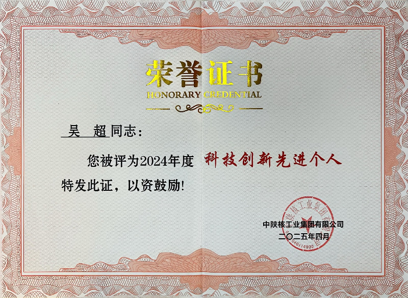 近日,中陜核集團公布2024年度科技創(chuàng)新表彰名單,二一〇所榮獲“科技創(chuàng)新先進單位”榮譽稱號,《可控沖擊波技術(shù)在鈾礦開采領域的研究及應用》“科學家+工程師”隊伍摘得“科技創(chuàng)新優(yōu)秀團隊”獎項,技術(shù)項目負責人吳超被授予“科技創(chuàng)新先進個人”稱號。