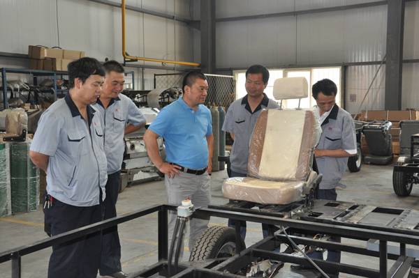 首先,王軍杰董事長在核昌公司楊昭副總經(jīng)理等人陪同下參觀了生產(chǎn)車間,詳細了解了目前的生產(chǎn)情況,并就電動清掃車生產(chǎn)進行了詳細交流。