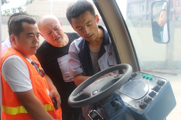 交付儀式舉行完后,核昌公司專業(yè)技術(shù)人員為咸陽市交通運輸局工作人員介紹了電動清掃機的車體結(jié)構(gòu)和操作面板,使工作人員對清掃機有了簡單的了解。之后,在公司大會議室召開新能源清掃機培訓(xùn)會,為操作人員詳細(xì)講解了清掃機的主要參數(shù)、操作方法和應(yīng)注意的問題,并在會后進行實地操作演示,解答操作人員的疑問,使操作人員更加快速、安全的熟悉操作方法。