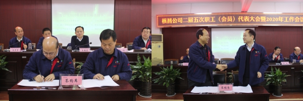 接下來會議轉(zhuǎn)為2020年工作會。首先由工會主席李偉傳達(dá)了集團(tuán)公司2020年職代會、工作會議精神及集團(tuán)公司董事長張斌成講話精神。其次,黨委委員、副總經(jīng)理張琳對2019年公司經(jīng)營考核結(jié)果進(jìn)行了通報,紀(jì)委書記任中賢宣讀了《2019年先進(jìn)集體和個人表彰決定》,公司領(lǐng)導(dǎo)對獲得先進(jìn)的集體和個人進(jìn)行頒獎。黨委副書記、總經(jīng)理?xiàng)钫?span>與各事業(yè)部負(fù)責(zé)人簽訂了《2020年經(jīng)營目標(biāo)責(zé)任書》,黨委書記王超宏分別與各黨支部書記簽訂《黨風(fēng)廉政建設(shè)責(zé)任書》,與公司工會簽訂了《工資集體協(xié)商協(xié)議書》、《女職工特殊權(quán)益保護(hù)專項(xiàng)合同》。隨后,對中層干部進(jìn)行了民主測評。