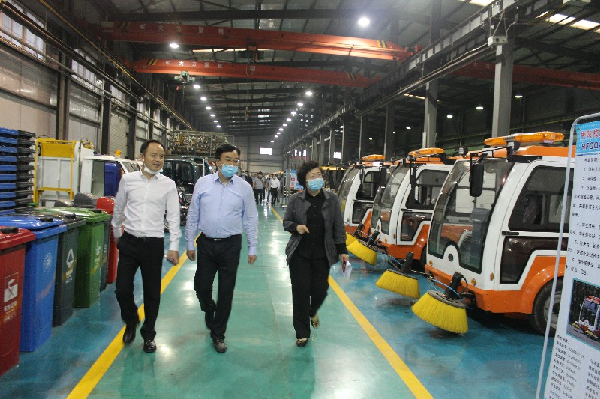 汪文展一行首先參觀了各產(chǎn)業(yè)板塊的生產(chǎn)車間,聽取了公司近幾年來在科技創(chuàng)新、制造研發(fā)等方面的成果,在觀看了新能源清掃機(jī)的實地演示后,雙方在二樓會議室進(jìn)行交流座談。