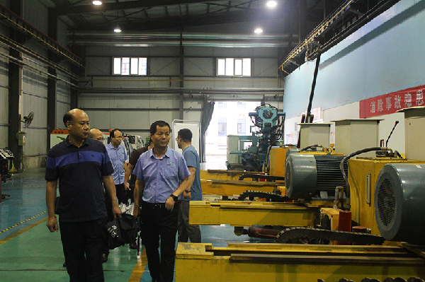 首先,闕足雙隊長一行在公司領(lǐng)導班子的陪同下,參觀了公司各生產(chǎn)車間,實地了解了新研發(fā)的智能拖車鉆機組等產(chǎn)品。隨后,雙方在二樓會議室進行交流座談。