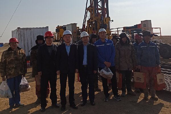 2020年11月13日,黨委書記、董事長王超宏,紀委書記任中賢前往鄂爾多斯市杭錦旗塔然高勒檢查指導HXY-1600智能型鉆機及NCT-10泥漿不落地裝置試驗工作并慰問參與試驗人員。
